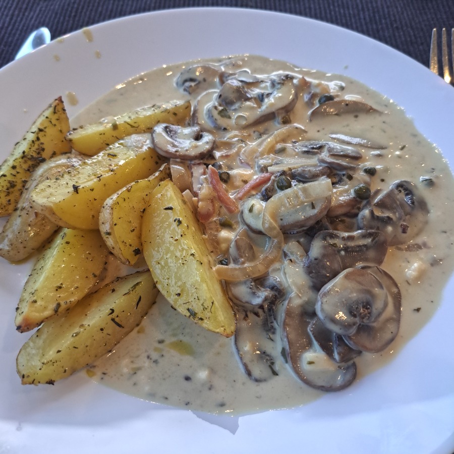Backofenkartoffeln mit sahnigen Champignons, das geht immer.