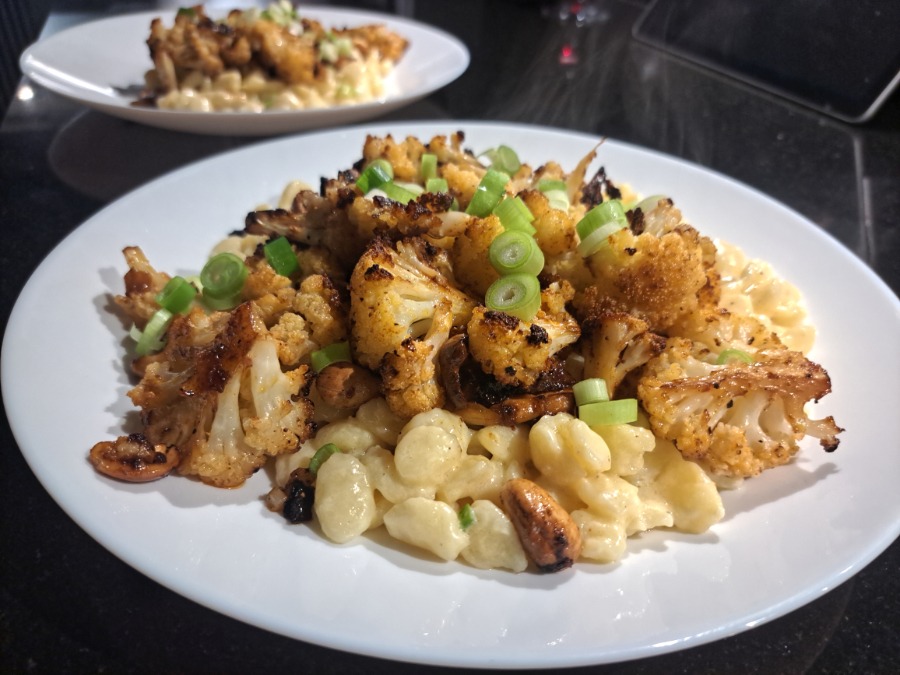 Knuspriger Blumenkohl auf Spätzle in Parmesansauce.